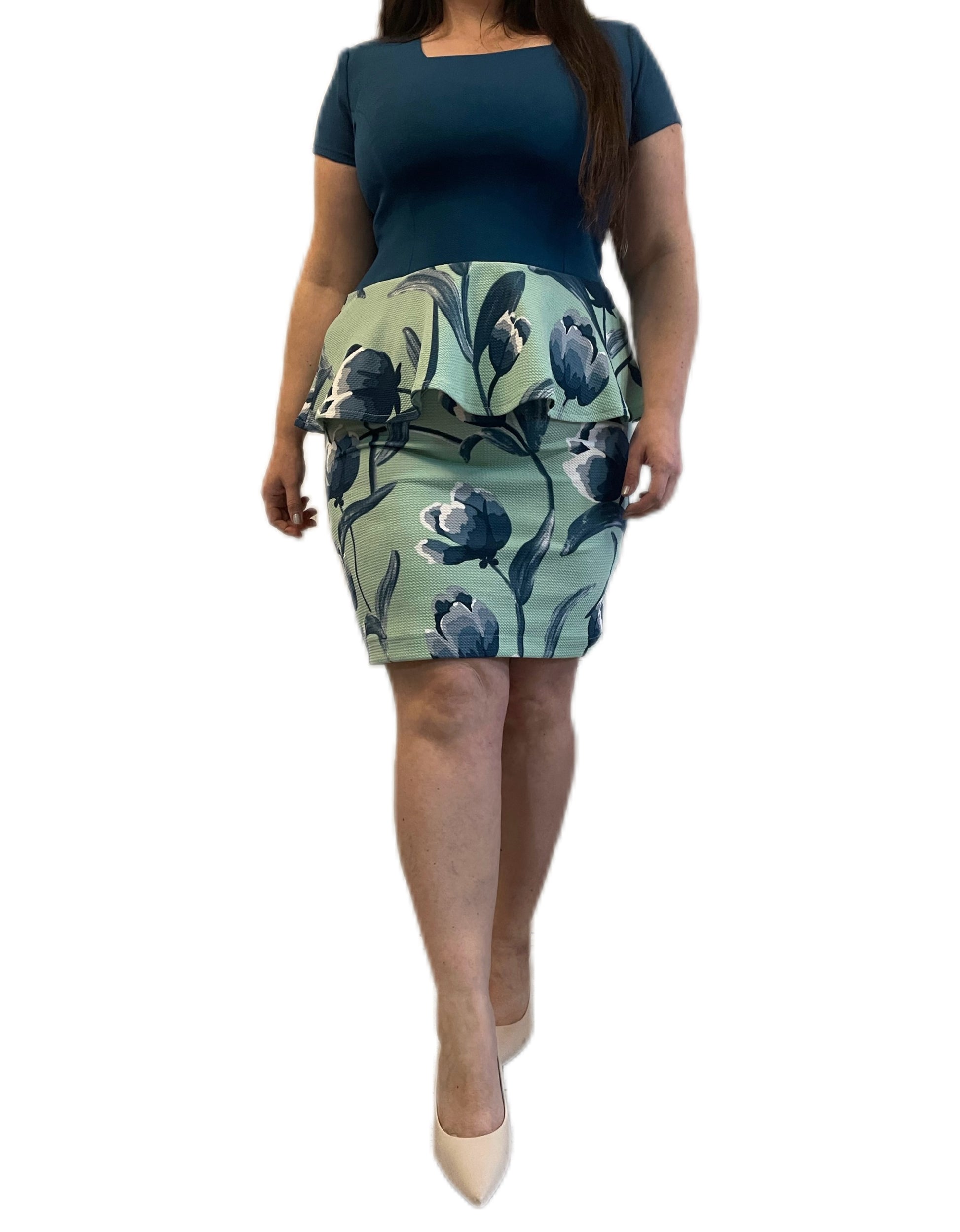 Elegante vestido confeccionado a mano. La tela se llama Sofía, es de grosor medio, ligero, elasticado, cómodo y con buen calce.